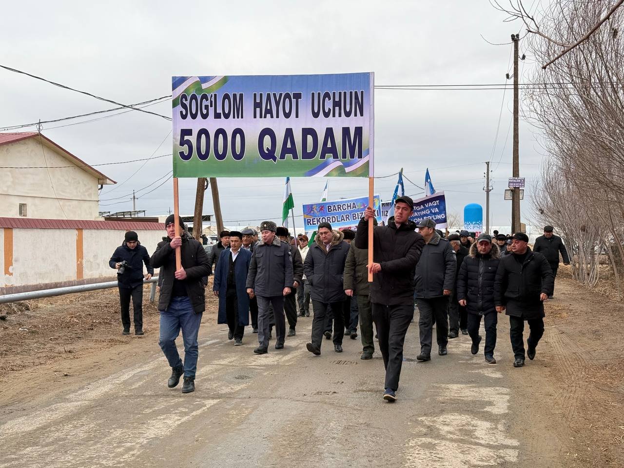 "Янгиариқ туманида бир кун"Янгиариқ туманининг "Хўжалар" маҳалласида "Обод ва хавфсиз маҳалла" дастури асосида амалга оширилиши режалаштирилган кенг қамровли ижтимоий-профилактик лойиҳа "Соғлом ҳаёт учун 5000 қадам" шиори остидаги юриш марафони билан бошланди.