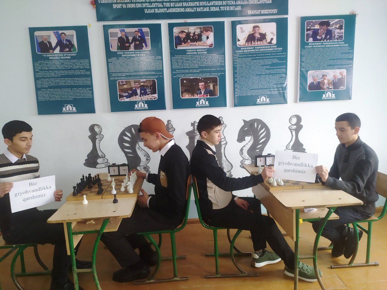 Yangiariq tumani Oq machit mahallasi yoshlari ishtirokida 39-son maktabning shaxmat xonasida "Biz giyohvadlikka qarshimiz" chellenji bòyicha Shahmat musobaqasi jarayoni foto - lavhalari.