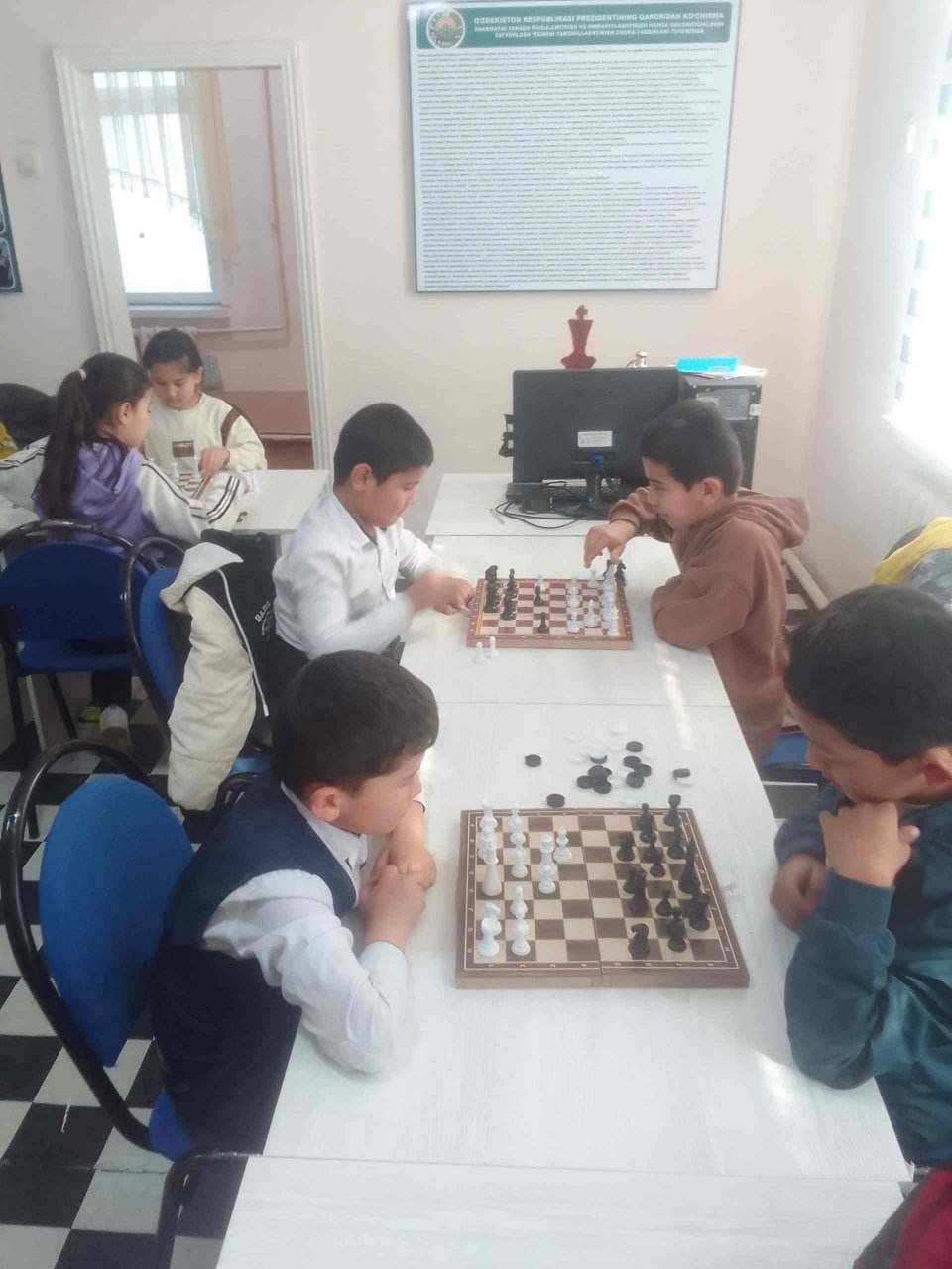 Qaror ijrosi amalda."O‘zbekiston Respublikasi Prezidentining “Yoshlarni sport bilan muntazam shug‘ullanishlari uchun shart-sharitlar yaratish to‘g‘risida”gi 2024 yil 18 dekabrdagi PQ-443 sonli qarori ijrosini ta’minlash maqsadida "Sherobod" mahallasidagi 25-son maktabda yoshlarining bo‘sh vaqtini mazmunli o‘tkazish, ularning sportga qiziqishini oshirish maqsadida, sportning "Shaxmat-shashka" turlari bo‘yicha musobaqalar o‘tkazildi.