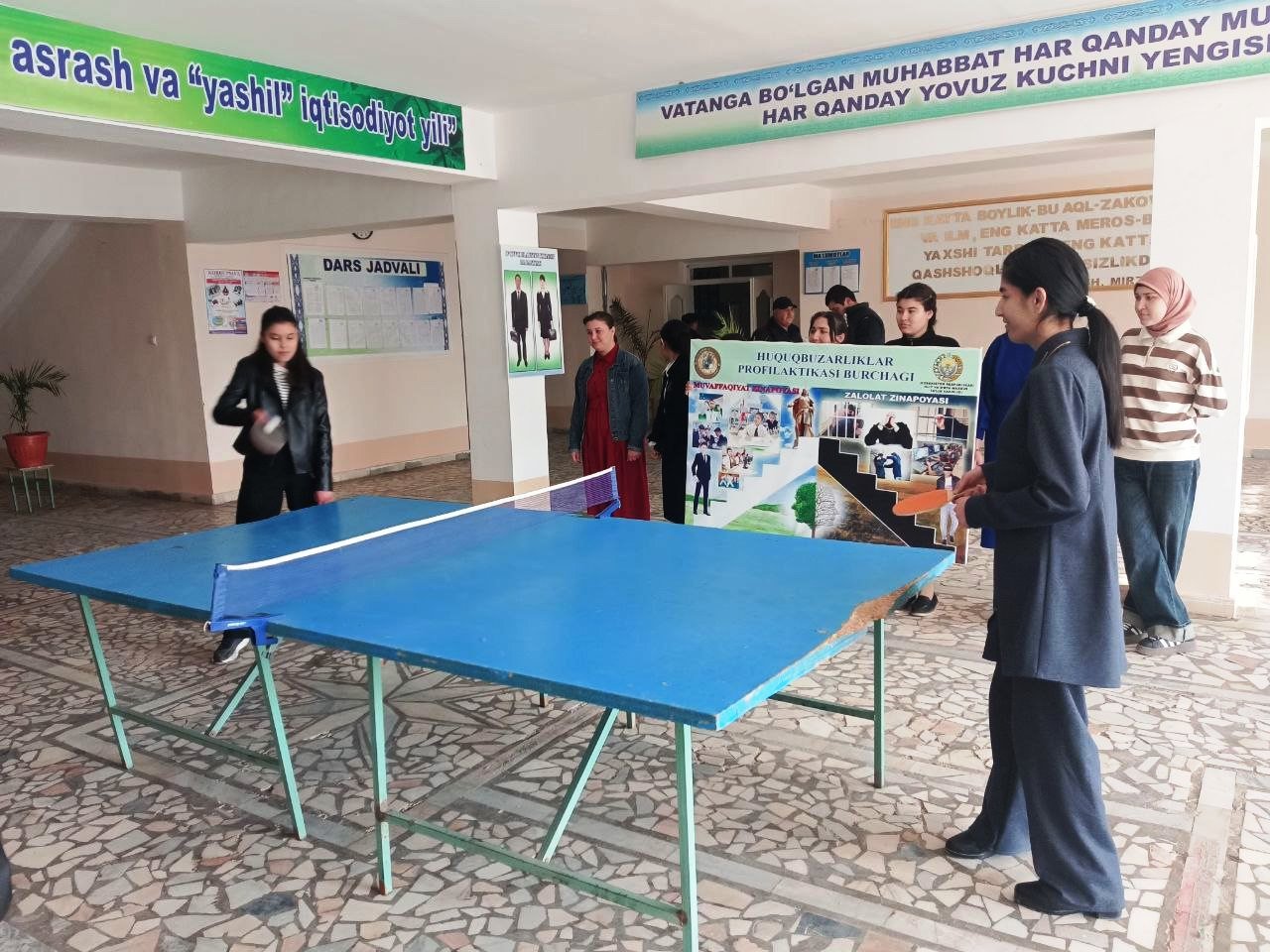 “Biz гидравлики qarshimiz” Xorazm viloyati sport boshqarmasining 2025 yil 10 fevaldagi 01-03/14-sonli Xorazm viloyatida Narkotik moddalarning suiiste’moli va noqonuniy aylanishiga qarshi kurash bo‘yicha “Biz giyohvandlikka qarshimiz” shiori ostida sport sog‘lomlashtirish tadbirlari tashkil etish va o‘tkazish bo‘yicha chora-tadbirlar rejasiga asosan 2025 yil 21 fevral kuni Professional ta’lim muassasalaridagi o‘quvchi qizlari o‘rtasida Yangiariq tumanidagi Tagan MFY hududidagi 2-son kasb-hunar maktabi zalida sportning Stol tennisi turi bo'yicha musobaqalar bo‘lib o‘tdi. Musobaqa g‘oliblari tuman sport maktabi tomonidan ta’sis etilgan 1-2-3 darajali diplomlar bilan taqdirlandilar.
