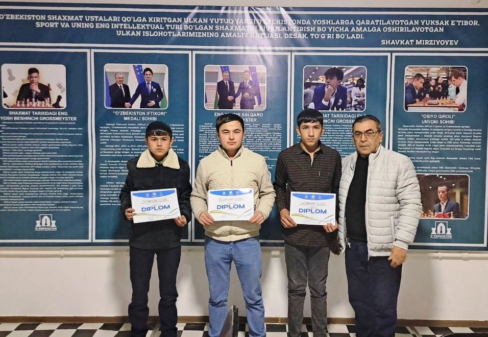 🏆 Xorazm viloyati hokimligi va Yoshlar ishlari boshqarmasi tashabbusi bilan 30 yoshgacha bo‘lgan havaskor shaxmatchi yoshlar o‘rtasida “Viloyat hokimi kubogi” shaxmat musobaqasining Yangiariq tuman bosqchi Yangiariq tuman sport maktabi o‘yingohidagi shaxmat xonasida o‘tkazildi. Erkaklar o‘rtasida “Qarmish” mahallasidan Zaxidov Shaxzod, qizlardan “Sherobod” mahallasidan Hakimova Shamsiya 1-o‘rinni egallab, viloyat bosqichi musobaqalariga yo‘llanma oldilar. Musobaqa g‘oliblari Yangiariq tuman yoshlar ishlari agentligi bo‘limi hamda Yangiariq tuman sport maktabi tomonida ta’sis etilgan 1-2-3 darajali diplomlar bilan taqdirlandilar.