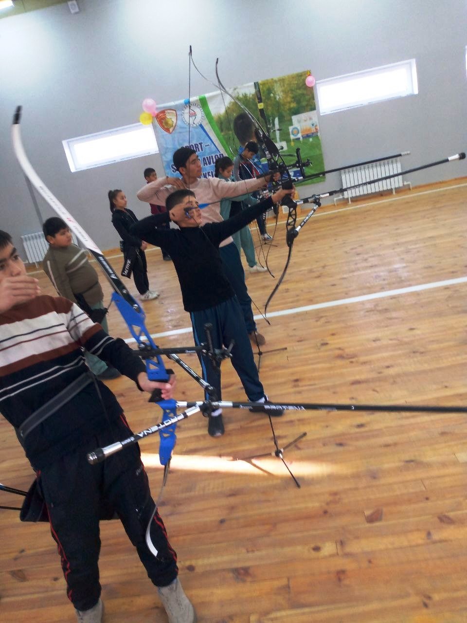 🏆 O‘zbekiston Respublikasi Prezidentining 2024-yil 12-dekabrdagi “O‘zbekiston Respublikasi Qurolli Kuchlari tashkil etilganligining 33-yilligi hamda Vatan ximoyachilari kuni bayramiga tayyorgarlik ko‘rish va uni yuqori saviyada o‘tkazish to‘g‘risida”gi F-62-sonli farmoyishi ijrosini ta’minlash maqsadida “Yangi O‘zbekiston armiyasi-mamlakat tayanchi, xalqimiz faxri!” shiori ostida 14-yanvar “Vatan himoyachilari kuni” munosabati bilan sport maktabi treneri G‘anibek Qozoqov tashabbusi bilan Kamondan o‘q otish sport bo‘yicha musobaqa o‘tkazildi. Musobaqa g‘oliblari tuman sport maktabi tomonidan ta’sis etilgan 1-2-3 darajali diplomlar bilan taqdirlandilar.