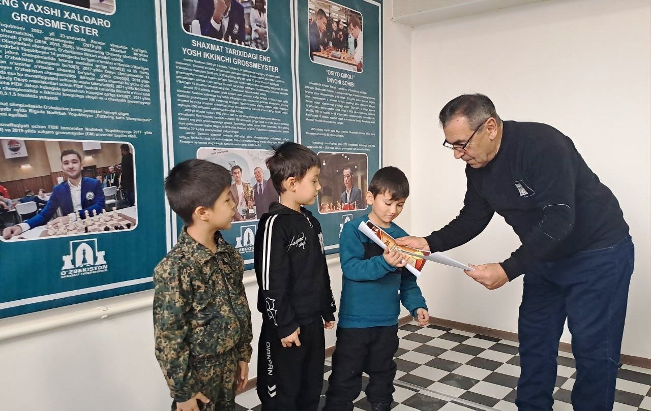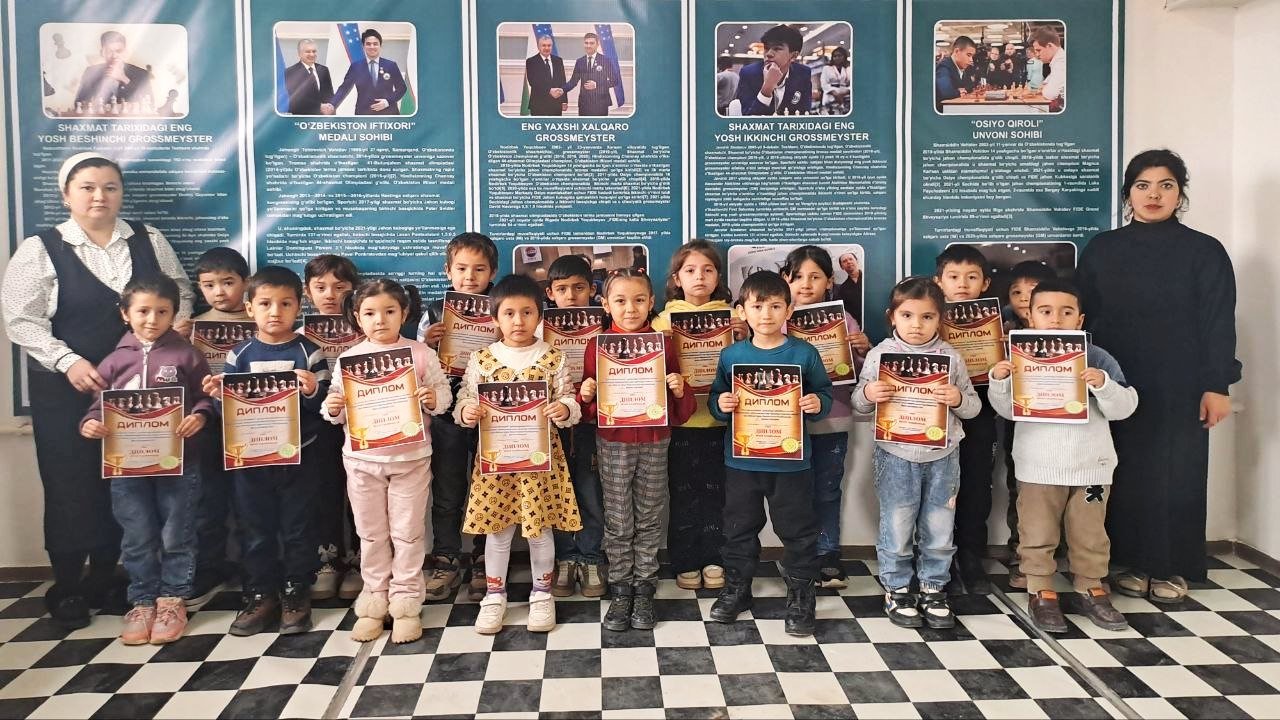 Bolalar festivali” doirasida Shaxmat musobaqasi.2024 yil 19 dekabr kuni Yangiariq tuman sport maktabida O‘zbekiston Respublikasi Sport vazirligining 2024-yil14-noyabrdagi “Yoshlar o‘rtasida shaxmat sport turini yanada rivojlantirish hamda shaxmatni ommaviy harakatga aylantirishga oid manzilli chora-tadbirlar dasturining” ijrosini ta’minlash maqsadida “Bolalar festivali” doirasida maktabgacha ta’lim muassasalari tarbiyalanuvhilari o‘rtasida sportning shaxmat turi bo‘yicha tuman birinchiligi musobaqasi bo‘lib o‘tdi. Shaxmat sport turi bo‘yicha 1-2-3-o‘rinlarni egallagan tarbiyalanuvhilar tashkiliy qo‘mita tomonidan ta’sis etilgan tegishli darajadagi diplomlar bilan taqdirlandilar.
